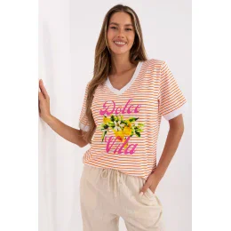 Pohodlný a štýlový top s ležérnym charakterom, ideálny na každý deň aj do práce. Vyrobený z priedušnej bavlnenej zmesi s prídavkom elastanu zaručuje pohodlie a jemné prispôsobenie sa postave. Vďaka štandardnej dĺžke a krátkym rukávom je tento kúsok skvelou voľbou na teplé dni a výstrih do V jemne zvýrazňuje krk a dodáva ženský pôvab. Pruhovaný vzor potlače dodáva celému kúsku moderný nádych, ideálny pre ženy, ktoré rady kombinujú pohodlie s odvážnym štýlom. Perfektný k džínsom aj sukni, nevyhnutný kúsok do každodenného šatníka!