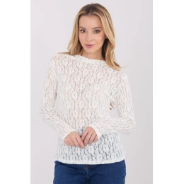 Elegantní krajková dámská blůza je stylovým návrhem, který se skvěle hodí do práce, ale i na slavnostní a společenské události. Jemný design a klasický střih činí z blůzy univerzální kousek ženského šatníku. Model s standardní délkou je vyroben z vysoce kvalitního spojení viskózy a elastanu, co zajišťuje pohodlí nošení, elasticitu a ideální přizpůsobení postavě. Různorodá struktura materiálu zdůrazňuje elegantní charakter blůzy a dodává jí jedinečný vzhled. Blůza má dlouhé rukávy a stylový dekolt typu bára, který decentně zdůrazňuje linii ramen a krku. Model bez zapínání, nasazovaný přes hlavu, zaručuje pohodlí a estetické provedení. Je to ideální volba pro ženy, které si cení elegance, ženskosti a nadčasového stylu v každé situaci.