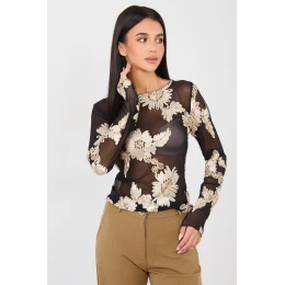 Elegantná, na mieru šitá blúzka z jemnej sieťoviny, ktorá jemne zvýrazňuje postavu. Model je vybavený efektným vyšívaným kvetinovým vzorom, ktorý dodáva celému kúsku jedinečný a ženský charakter. Blúzka je ideálna na spoločenské udalosti a večierky, predstavuje štýlový prvok večerných outfitov. Dlhé rukávy a klasický okrúhly výstrih dodávajú blúzke eleganciu a nadčasový vzhľad. Je vyrobená z polyesteru s prídavkom elastanu, poskytuje pohodlie pri nosení, pružnosť a dobre sedí. Štandardná dĺžka zaručuje, že blúzka sa hodí k sukniam aj elegantným nohaviciam.