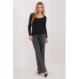 Přizpůsobená dámská dlouhá tričko je univerzální základ pro mnoho stylizací, jak do každodenního života, tak do práce. Udržovaný v casual stylu dokonale kombinuje pohodlí s nadčasovou jednoduchostí. Model se standardní délkou je vyroben z pružné, žebrované bavlny, která příjemně obepíná tělo a dokonale se přizpůsobuje siluetě, zdůrazňující její přednosti. Hladký vzor dělá tričko mimořádně všestranným a snadno kombinovatelným s jinými kousky oblečení. Dlouhý rukáv poskytuje pohodlí v chladnějších dnech, a výstřih ve tvaru srdce decentně zjemňuje krk a přidává ženský charakter. Chybějící zapínání zdůrazňuje minimalistický, moderní design. Jedná se o praktický a stylový návrh, který se skvěle hodí k džínům, sukni nebo elegantním kalhotám, vytvářející pohodlný a módní vzhled na každou příležitost.