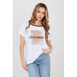 Elegantný a pohodlný top na každý deň v ležérnom dizajne, ideálny na každý deň. Model má klasický okrúhly výstrih s kontrastným lemovaním, ktoré dodáva jemný charakter a zvýrazňuje detaily oblečenia. Top zdobí vyšívaný flitrový nápis na prednej strane, ktorý je výrazným akcentom a dominantným vzorom v celom modeli. Krátke rukávy a štandardná dĺžka zaručujú pohodlie pri nosení a voľný, každodenný strih sa hodí k ležérnemu štýlu. Vyrobený je z kvalitnej bavlny s prídavkom elastanu, vďaka čomu je mäkký, príjemný na dotyk a mierne elastický, čo poskytuje pohodlie počas celého dňa. Model nemá zapínanie, čo zdôrazňuje jednoduchosť a funkčnosť dizajnu.
