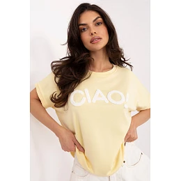 Tričko na každý deň s univerzálnym charakterom, ktoré sa hodí k mnohým štýlom. Model má na prednej strane kontrastný nápis, ktorý celému kúsku dodáva moderný a uvoľnený štýl. Je vyrobené z príjemnej zmesi viskózy a elastanu, vďaka čomu poskytuje pohodlné nosenie a jemné prispôsobenie sa postave. Vďaka štandardnej dĺžke a krátkym rukávom je skvelou voľbou na teplejšie dni alebo ako základný kúsok do vášho šatníka. Má klasický okrúhly výstrih a je bez zapínania, čo ešte viac zdôrazňuje jeho pohodlný, ležérny charakter.