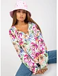 Ecru velúrová blúzka s potlačou a výstrihom do V RUE PARIS .