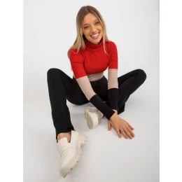 Červeno-čierna základná blúzka s rebrovaným rolákom.