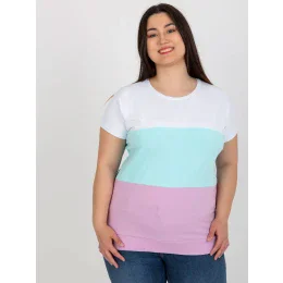 Bielo-mätová blúzka plus size s okrúhlym výstrihom.