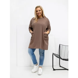 Modelka má na sebe veľkosť one Rozmery modelky: výška 167 cm, prsia 118 cm, pás 90 cm, boky 118 cm.