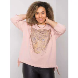 Dámská plus size halenka s aplikací ve špinavě růžové barvě.