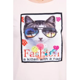Blúzka s 3D grafikou mačky púdrovo ružová