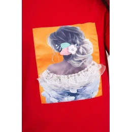 Blúzka s 3D grafikou, čipková červená