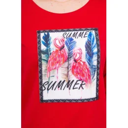 Pridanie recenzie k Blúzka s 3D grafikou plameniaka červená