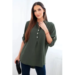 Halenka s delší zadní částí tmavé khaki