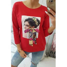 Blúzka s grafickou a farebnou 3D mašľou červená
