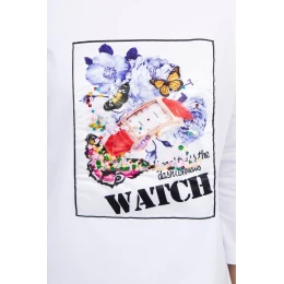 Blúzka s grafikou 3D Watch biela