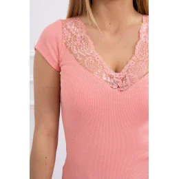 Blúzka s čipkovým výstrihom marhuľová