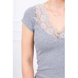 Blúzka s čipkovým výstrihom šedá