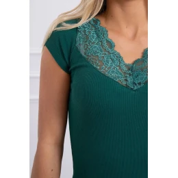 Blúzka s čipkovým výstrihom zelená