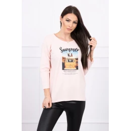 Blúzka s potlačou Letné auto púdrovo ružové