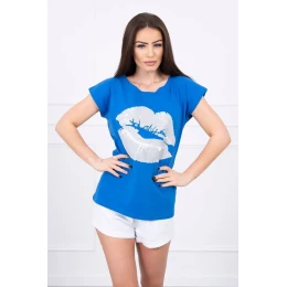 Blúzka s potlačou pier nevädzovo modrá