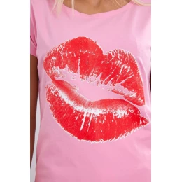 Predstavujeme vám módnu blúzku. Blúzka s potlačou pier. Blúzka s krátkym rukávom. Super grafika na tričku. Blúzka ideálna na leto s šortkami. Blúzka je vyrobená z vysoko kvalitného materiálu. Veľkosť je univerzálna a vyhovuje dámam, ktoré nosia veľkosť S, M alebo L.