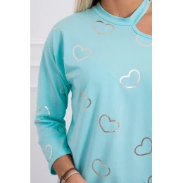 Blúzka s potlačou srdca v mätovej farbe