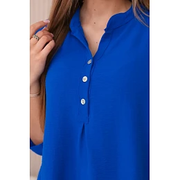 Blúzka s predĺženým chrbtom v chrpovo modrej farbe