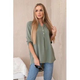 Blúzka s predĺženým zadným dielom svetlej khaki farby