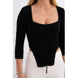 Blúzka s rebrovaným výstrihom čierna