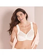 Pohodlná, mäkká podprsenka bez kostice značky Anita, určená pre ženy s veľkými prsiami. Vyrobená z kvetinovej, elastickej čipky podšitej elastickým tylom a pohodlného mikrovlákna.