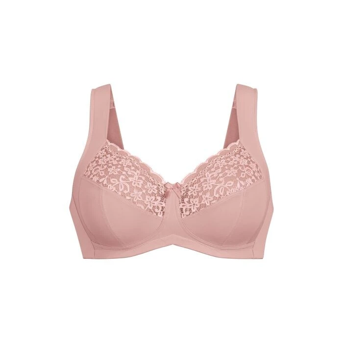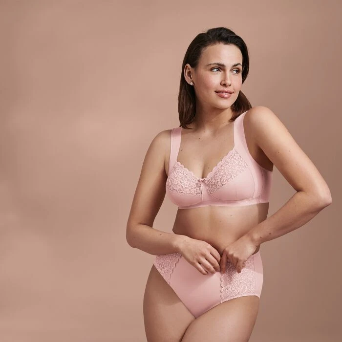 Pohodlná, mäkká podprsenka bez kostice značky Anita, určená pre ženy s veľkými prsiami. Vyrobená z kvetinovej, elastickej čipky podšitej elastickým tylom a pohodlného mikrovlákna.