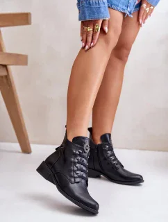 Komfortní dámské černé kotníčkové boty na plochém podpatku