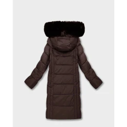 Hnědá dlouhá dámská bunda s kapucí model 21819865 - ROSSE LINE