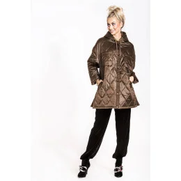 Hnědá prošívaná dámská oversize bunda s kapucí model 20471217 - Ann Gissy