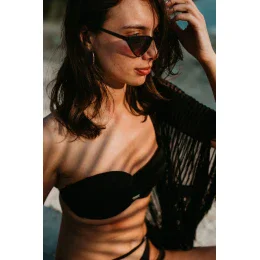 Horní díl plavek Beach balkonette KRIS LINE - černá barva - košíčky vyztužené kosticemi - ozdobný detail - odnímatelná ramínka