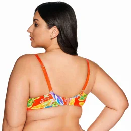 Horní díl plavek Vivid 226 AVA - oranžová barva - polstrované košíčky s kosticemi - tropický vzor - nastavitelná ramínka