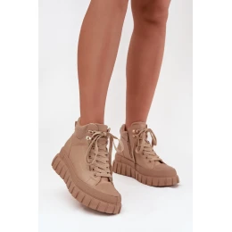 Dámske členkové trapasy z ekokože sú ideálnou voľbou na chladnejšie dni. Model umiestnený na pevnej platforme zabezpečí stabilitu a pohodlie pri chôdzi. Topánky sú šnurovacie a zapínajú sa na zips, vďaka čomu sa ľahko obúvajú a umožňujú ideálne prispôsobenie nohe. Vonkajšia strana zateplená mäkkým materiálom zabezpečí teplo a pohodlie aj počas chladných dní. Sú to štýlové a praktické členkové topánky, ktoré sa skvele hodia na každodennú mestskú štylizáciu.