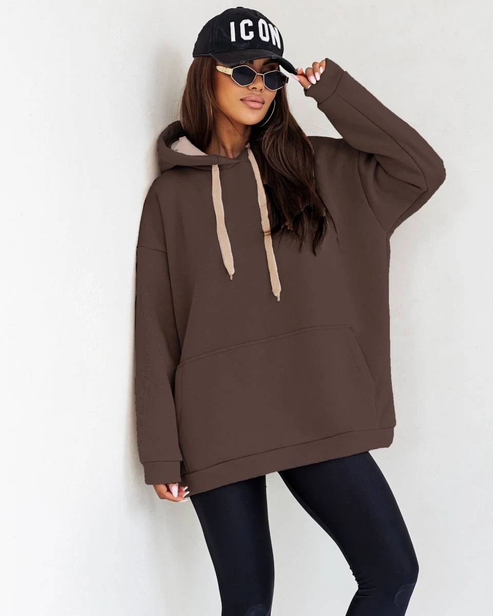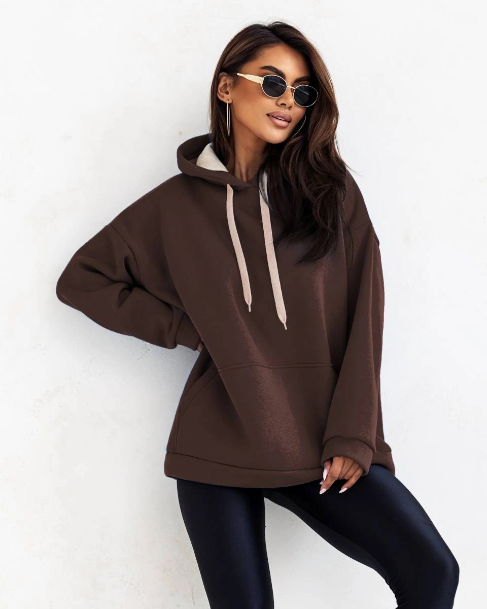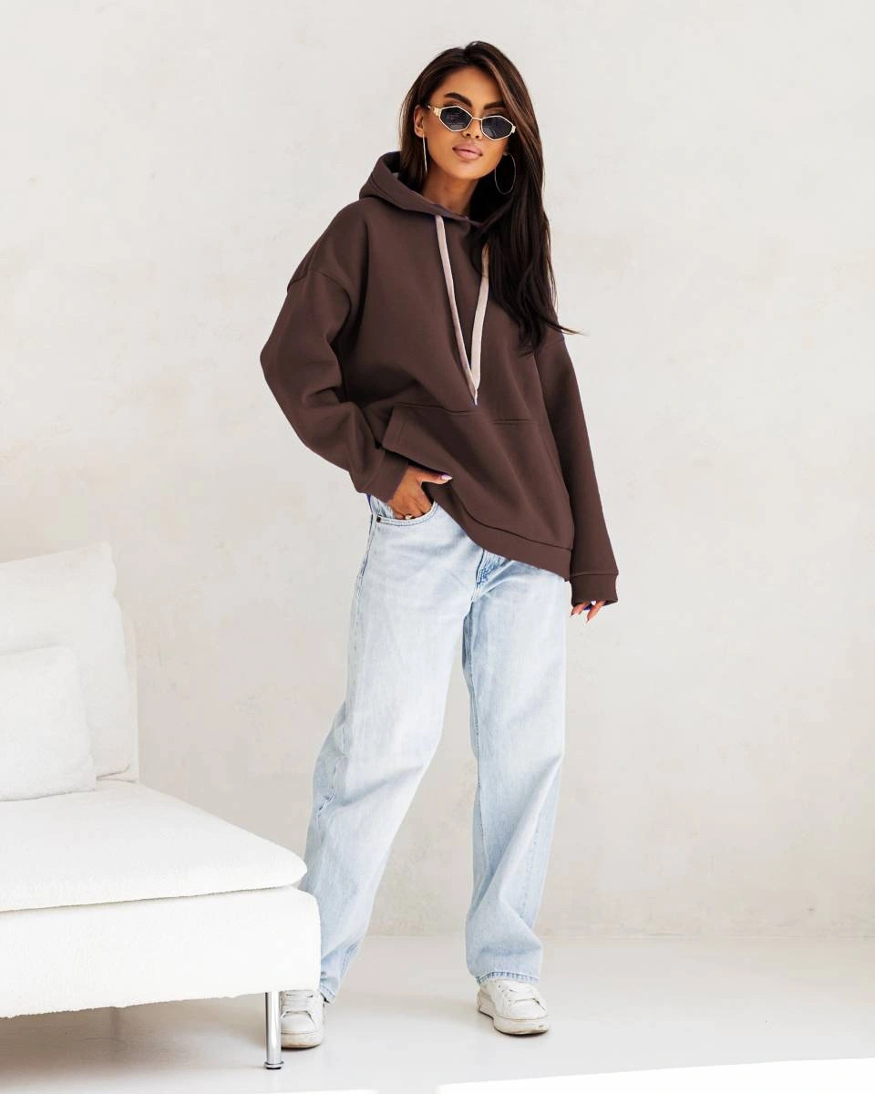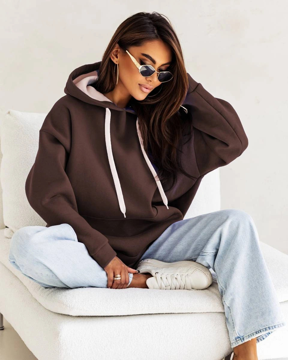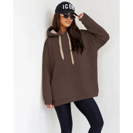 Hrubší dámská klokaní mikina v čokoládové barvě (82131)