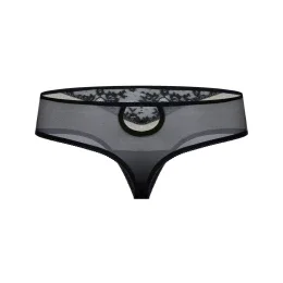Smyslná tanga, která lákají na zádech krásným zirkonem umístěným vysoko nahoře. V černé a tmavě béžové barvě, které při vzájemném porovnání vytvářejí působivý efekt. Jemný květinový vzor na látce. Diagonální kombinace poloprůhledné krajky a úpletu opticky zeštíhluje postavu.