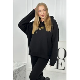 Izolovaná bavlnená súprava, mikina s vyšívacími + nohavicami čierny