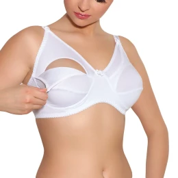 Podprsenka od Jarpol. Model MK. Výrobek má nastavitelné popruhy bez možnosti odepnutí. Podprsenka se zapínáním na háčky a oči. Upevňovací bod: vzadu. Dvě řady svislých háčků. Dva stupně vodorovných háčků. Výrobek je vyroben z 87 % z polyamidu a 13 % z elastanu. Těhotenské oblečení. Výrobek pro ženy. Spodní prádlo má odnímatelný košíček. Výhody produktu: klasický mateřský komfortní měkký.