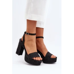 Jeansowe Sandały Na Słupku Czarne Acrana