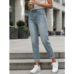 Dámske džínsy s vysokým pásom mom fit svetlomodré FashionStreet UY2909