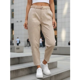 Dámske džínsy s vysokým pásom a opaskom béžovej farby FashionStreet UY2917