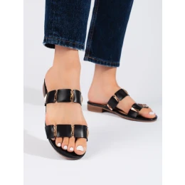Jedinečné dámské nazouváky černé na plochém podpatku