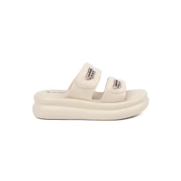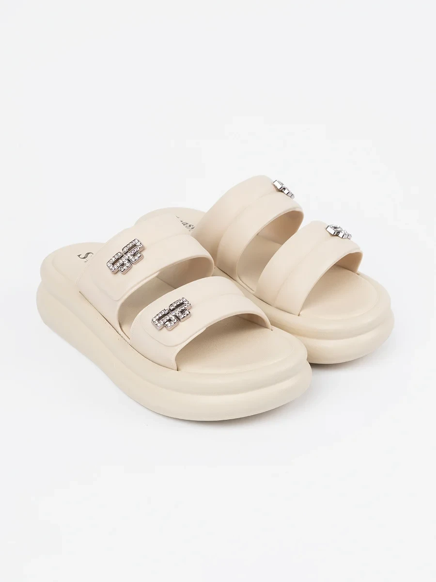Jedinečné dámske papuče na platforme Jasnobeżowy