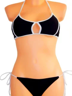 Dámske plavky dvojdielne sexi bikiny Sultry polstrované košíčky zdobené bielymi lemami čierne - Čierna - OEM30.25