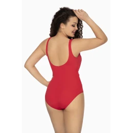 Na první pohled obyčejné jednodílné dámské plavky získaly úchvatný vzhed díky asymetrickému nařasení a ozdobnému pásku v pase. Intenzivní červená barva přitahuje pozornost. Všité košíčky typu "kopa" pěkně stabilizují poprsí. Zadní díl plavek je hluboko vykrojený.
