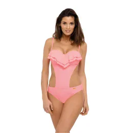 Nechajte sa zviesť horúcimi latinskoamerickými rytmami! Tento rok v lete si oblečte plavky inšpirované najmódnejším kubánskym štýlom. Jedná sa o jednodielne monokiny s vykrojenými bokmi, ktoré im dodávajú moderný charakter. Horný diel plaviek tvorí sexy push-up a presne tvarované košíčky, vystužené špeciálnou penou, so zabudovanou, stálou a neodnímateľnou push-up výplňou (push-up je súčasťou každej veľkosti plaviek). Strih dvíha a zväčšuje prsia a vytvára sexy dekolt zdobený vzdušným volánikom. A to nie je všetko. Plavky sú vyrobené z talianskej elastickej tkaniny, sú hladké, pohodlné, zaväzujú sa na chrbte a majú plne odnímateľné ramienka. Svieže farby sú k dispozícii vo viac ako tuctu variant - vyberte si svoju obľúbenú farbu.