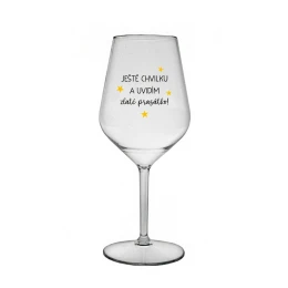 JEŠTĚ CHVILKU A UVIDÍM ZLATÉ PRASÁTKO - čirá nerozbitná sklenice na víno 470 ml