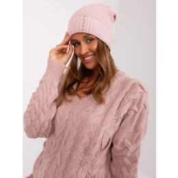 Svetloružová zimná čiapka s aplikáciou RUE PARIS.