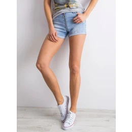 Modré džínové šortky s roztřepením.
